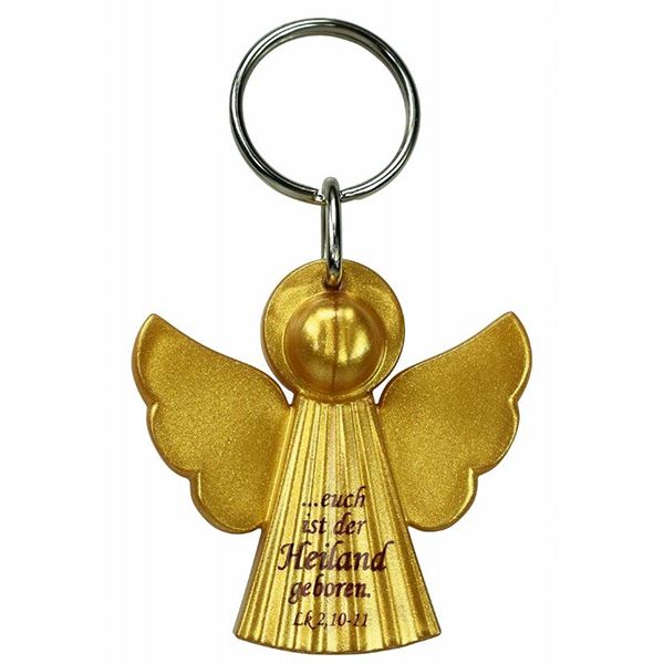 Schöner kleiner Engel aus Acryl mit Schlüsselring und Aufdruck "... euch ist der Heiland geboren."