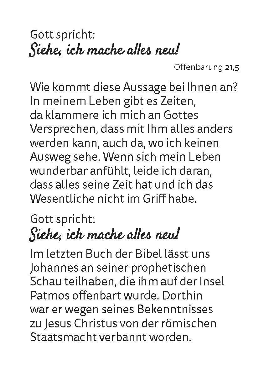 Biblische Betrachtungen zur Jahreslosung und Erzählungen von Renate Karnstein werden von einem Gruß zum Geburtstag eingerahmt und mit Bildern illustriert. Die Hefte können in diesem Format in jedem Briefumschlag verschickt werden.