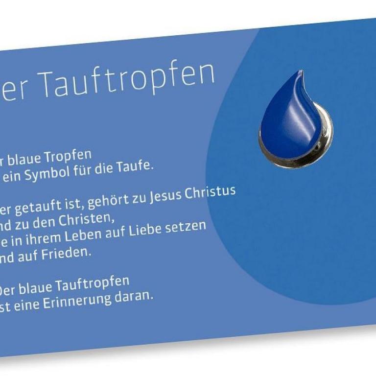 Inklusive einer Taufkarte mit Tauftropfen-Pin und Beschreibung
